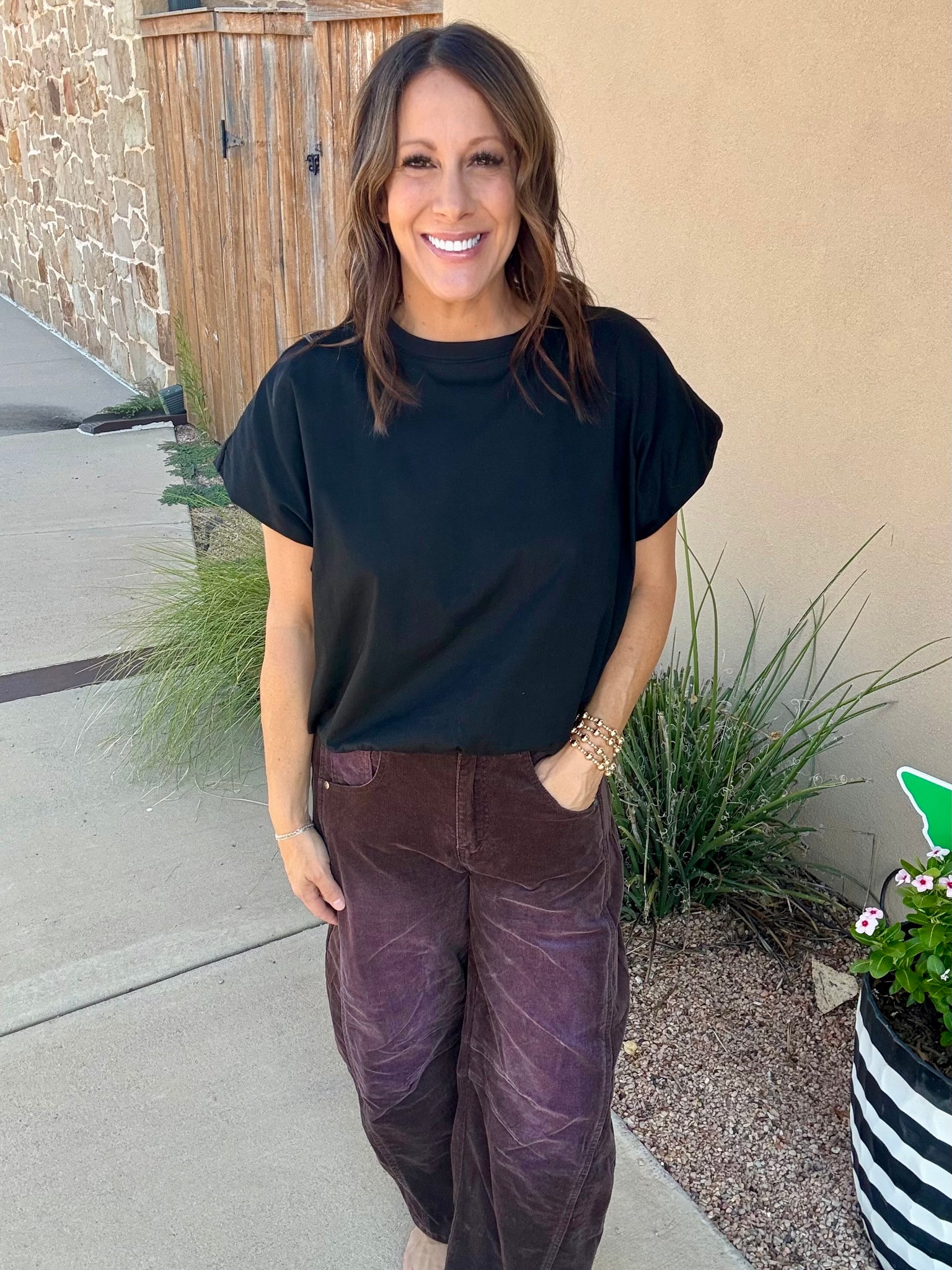 Your new cool-girl staple for fall 🍂 These cropped straight-leg barrel pants are designed with a high waist and a loose, tapered leg for a modern, laid-back vibe. Finished with side pockets, belt loops, and a zip fly with button closure, they’re as functional as they are flattering. Pair them with everything from sneakers to ankle boots for effortless style. Sara is in a small. Contect:100% Cotton