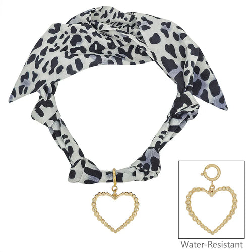 White Cheetah Print Scarf Necklace with Open Heart Charm