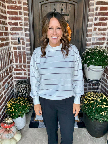 • Henley Style Striped Sweatshirt